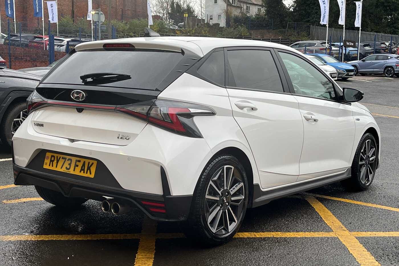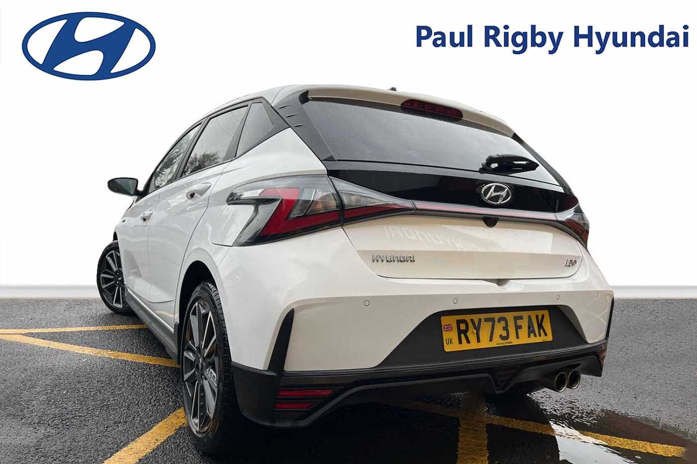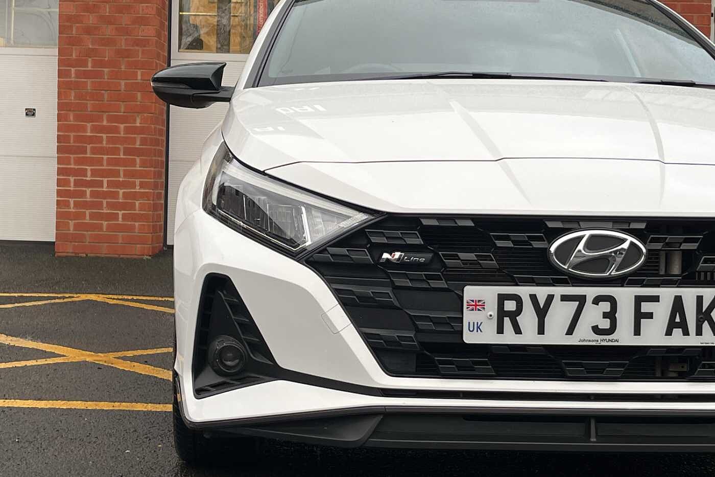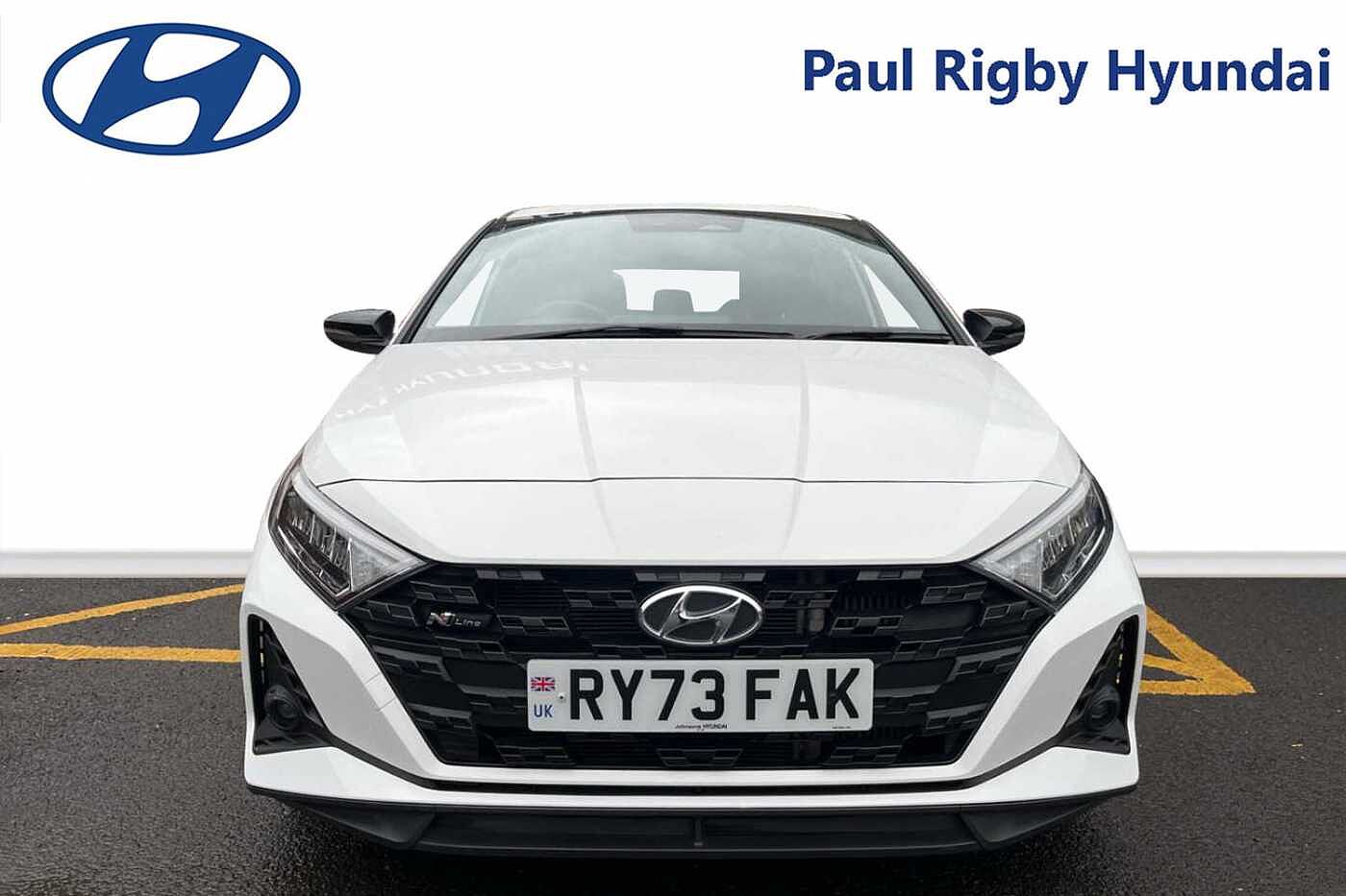 Here for sale at Paul Rigby Hyundai Bromsgrove, we are proud to offer this stunningly prepared Hyundai i20 N-Line DCT finished in the gleaming Atlas White. The N-Line has been given a splash of the N performance treatment on both the exterior and interior. Featuring a dynamic new front bumper, textured cascading grille, and an enhanced sleek rear bumper. This does not only give the N-Line it's energetic look but also improves aerodynamic performance. This specific i20 N-Line is fitted with the 7 speed DCT automatic transmission, the output of the N-Line is 120ps which comes from the higher powered 1 litre T-GDI petrol engine and 48volt mild hybrid system. The N-Line effortlessly puts the power down thanks to the 7 speed dual clutch transmission and will also return excellent fuel consumption figures with a combined average return of 53.3mpg. Interior features a leather N-Line steering wheel, specially designed N-Line gear shift with red inserts, N-Line sporty seats with bigger bolsters and side cushions for a comfortable yet engaged driving experience. Some of the smart tech and safety features includes on the i20 N-Line include rear guidance camera, cruise control, rear parking sensors, lane keep assist, lane departure warning, 10.25' touchscreen nav, 10.25' digital drivers cluster, Apple car play & Android auto, plus many more. The Paul Rigby Group has been passionate about customers, environment and standing out within the automotive industry since 2010. Our Hyundai Branch which has been a family business since 1996, that has gone above and beyond to make sure our customers have the best possible experience throughout their purchase and beyond. Drop by Hyundai Bromsgrove and our devoted sales and service department will be sure to fulfil any enquires you may have.