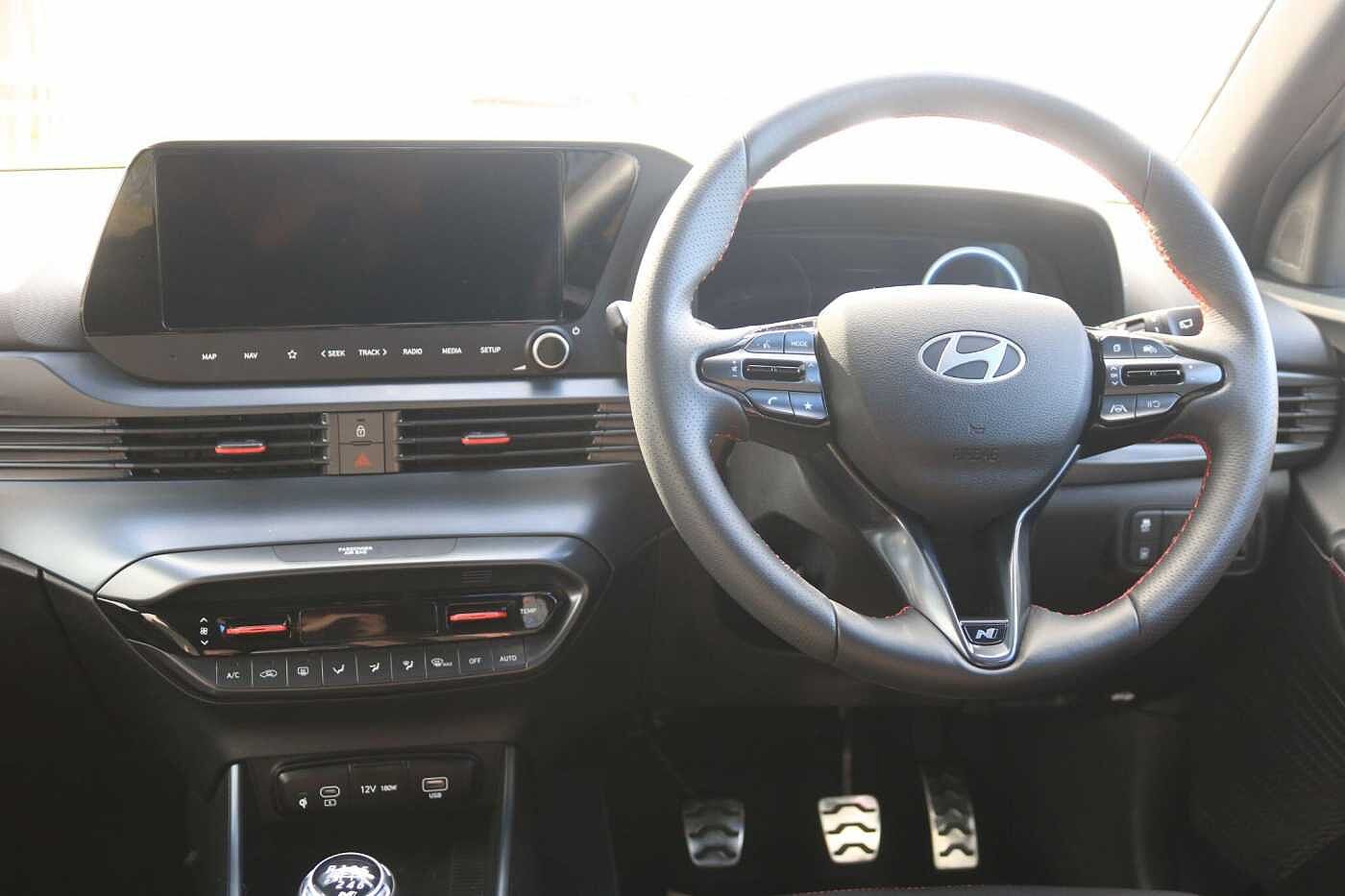 This 2025 Hyundai i20 T-GDi N Line S presents an exceptional opportunity with remarkably low mileage for its age, having covered just 5227 miles. This Euro 6 compliant model boasts a 1.0 litre petrol engine and comes equipped with a desirable electric opening glass sunroof, a premium BOSE sound system for an enhanced audio experience, and a rear view parking camera complemented by front and rear parking sensors for effortless manoeuvring. The inclusion of a heated steering wheel ensures comfort during colder journeys. Beyond its impressive features, this Hyundai i20 N Line S offers practical advantages that set it apart. Its generous boot space provides ample room for luggage or shopping, making it a versatile choice for everyday life. The vehicle's acceleration, reaching 0-62mph in 10.4 seconds, demonstrates a responsive performance that contributes to a confident driving experience, indicating its capability compared to other vehicles in its class.