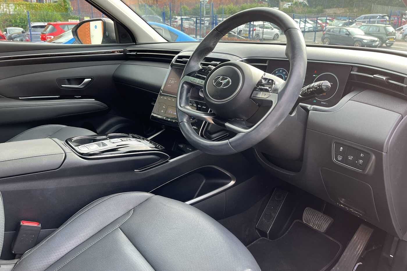 Here at Paul Rigby Hyundai Bromsgrove, we have this stunningly prepared Hyundai Tucson Ultimate Hybrid for sale. State of the art design, electrifying performance the Tucson is taking modern aesthetics to the next level, with chiselled lines and muscular stance, finished off with dynamic lines combined with rich surfaces. This Ultimate Hybrid model is fitted with the new t smart stream 1.6 petrol engine combined with a 44.2 kW electric motor and 1.49 lithium -ion polymer battery for a combined total output of 230ps. The Tucson has endless practicality with storage space throughout, excellent rear passenger space and enormous boot size of 577 litres that becomes a whopping 1756 with the rear seats down. Filled to the brim with smart tech that allows for a stress-free driving experience and with the help from Hyundai's Bluelink services your Tucson is connected with your smartphone at all times with many clever features at your fingertips. Winner of Auto Expresses 'Mid-size SUV of the year' in 2021 the Tucson has been dominating ever since, the Tucson's rugged SUV heritage has been cemented into a cutting-edge SUV. The Ultimate Hybrid is fitted with Hyundai's latest smart tech and safety features such as lane keep assist, front and rear parking sensors, rear guidance camera, rear cross traffic collision avoidance, adaptive cruise control, Hyundai's Bluelink services, car play and android auto, krell premium audio, smartphone wireless charging pad, 10.25' touchscreen nav, 10.25' digital cluster plus many more. The Paul Rigby Group has been passionate about customers, environment and standing out within the automotive industry since 2010. Our Hyundai Branch which has been a family business since 1996, that has gone above and beyond to make sure our customers have the best possible experience throughout their purchase and beyond. Drop by Hyundai Bromsgrove and our devoted sales and service department will be sure to fulfil any enquires you may have.