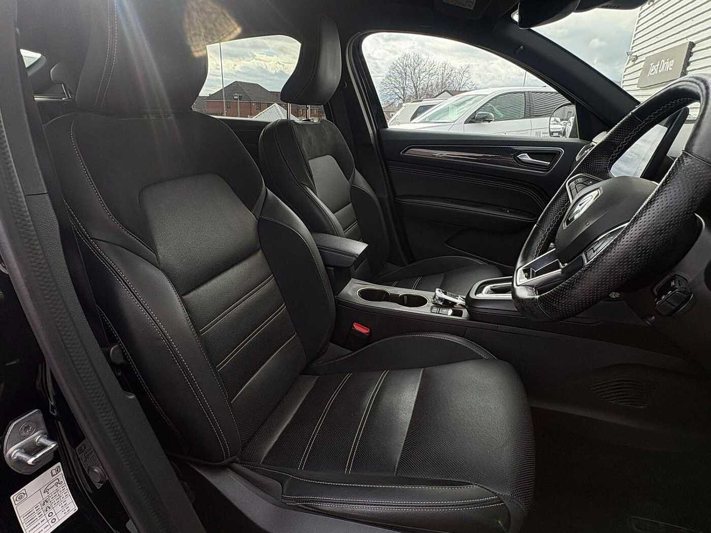 - E-TECH Engineered suede-leather upholstery with gold stitching