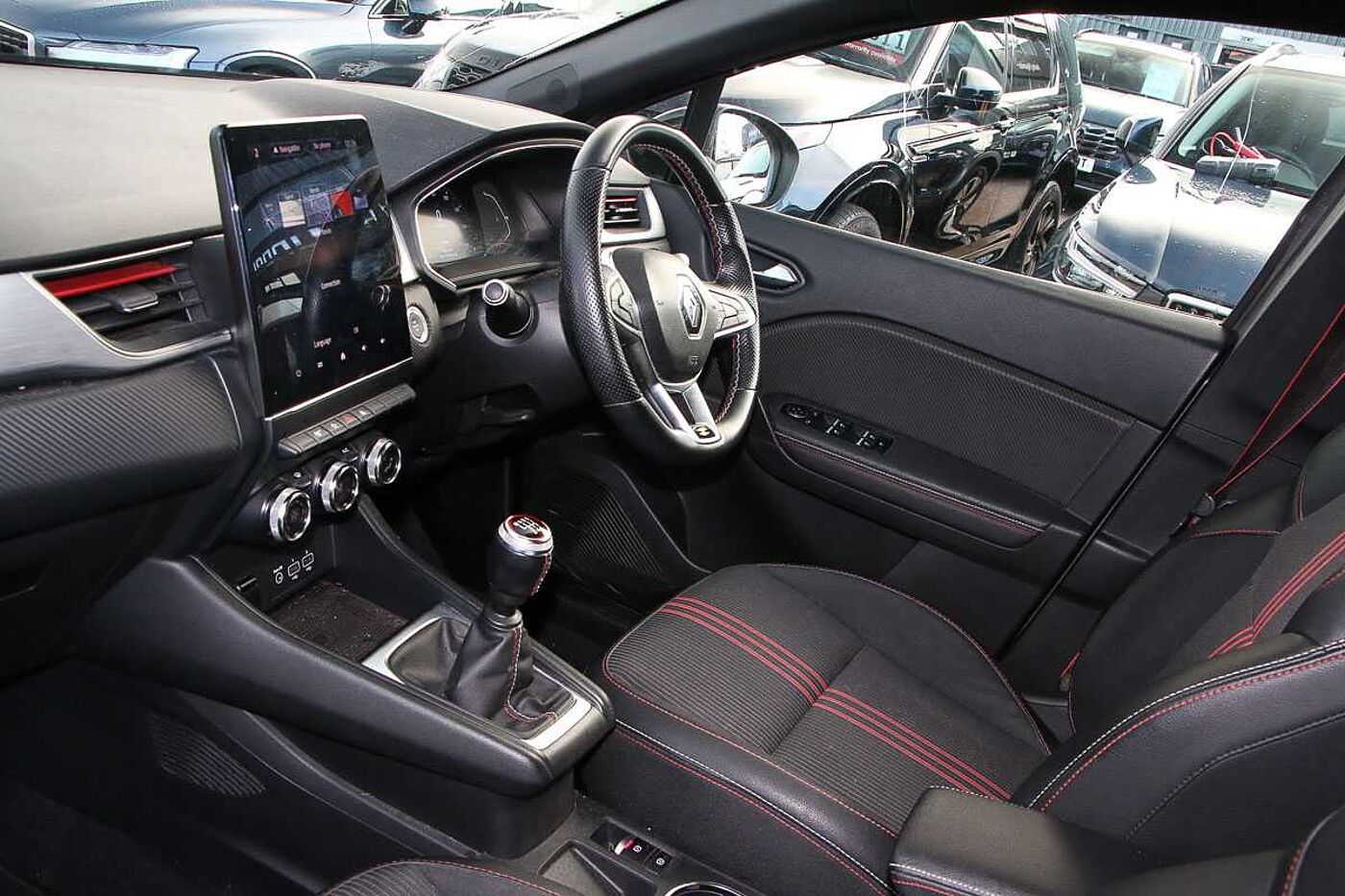 • RS Line synthetic leather/cloth upholstery with red lines and red stitching
